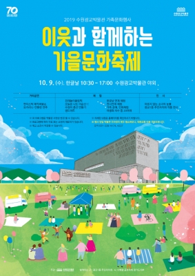 [충청뉴스큐] 수원시광교박물관은 한글날을 맞아 오는 10월 9일 오전 10시 30분부터 오후 5시까지 수원광교박물관 야외마당에서 ‘이웃과 함께하는 가을문화축제’를 연다.