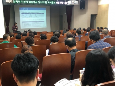이날 교육에서 황복순 강사는 ‘환자와 가족이 병원에서 알아야 할 복지정보’라는 주제로 강의했으며 시민들이 알아야할 사회보장제도 종류에 대한 소개와 그에 대한 자세한 설명을 통해 교육에 참여한 참가자들의 이해도를 높혔다.