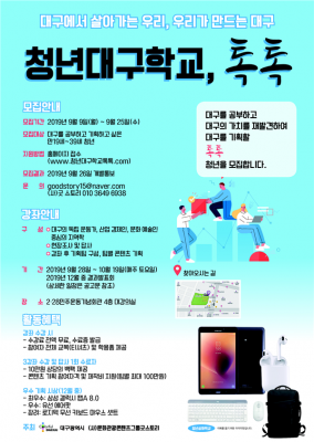 [충청뉴스큐] 대구시와 문화관광콘텐츠그룹굿스토리는 청년들이 지역 정체성을 구축해 대구의 새로운 가능성을 발견하고, 아울러 지역에 대한 소속감과 자부심을 가질 수 있도록 체계적인 지역학 교육의 장을 마련했다.