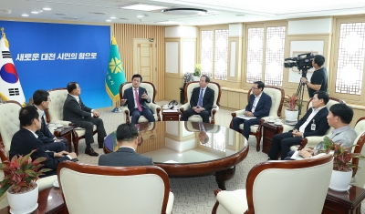 대전시는 27일 오후 응접실에서 허태정 대전시장이 ㈜신세계 장재영 사장 등 임원진들을 만나 사이언스콤플렉스 내 5성급 호텔조성, 100년 전통 호텔명가 신세계조선호텔 운영 및 사이언스콤플렉스와 한밭수목원을 연결하는 보도육교 건립 약속을 받았다고 밝혔다.