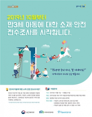 [충청뉴스큐] 보건복지부와 경찰청은 오는 10월부터 12월까지 만3세 아동의 소재와 안전을 확인하고 양육환경 개선에 필요한 서비스를 지원하기 위한 전수조사를 실시한다고 밝혔다.
