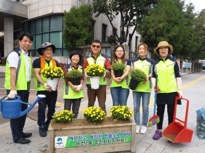 [충청뉴스큐] 평택시 비전2동 주민자치위원회는 지난 27일 주민자치위원 및 마을주민 등 20여명이 참석한 가운데 ‘아름다운 마을 만들기 사업’일환으로 시내 곳곳에 국화 총 400본을 식재했다.