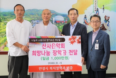 [충청뉴스큐] 안성시 칠장사는 지난 9월 30일 저소득 청소년을 위해 지원해 달라며 안성시에 이웃돕기 후원금 1000만원을 기탁했다.