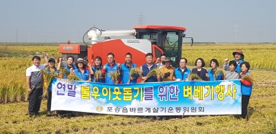 [충청뉴스큐] 평택시 포승읍 바르게살기위원회는 지난달 30일 포승읍 원정리에서 위원 20여명이 참석한 가운데 ‘불우이웃돕기를 위한 벼베기 행사’를 진행했다.