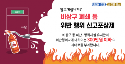 신고내용은 비상구 폐쇄·훼손, 소방시설 차단 등이며, 포상내용은 5만원 상당의 원하는 지역의 화폐로 변경해 지급된다.