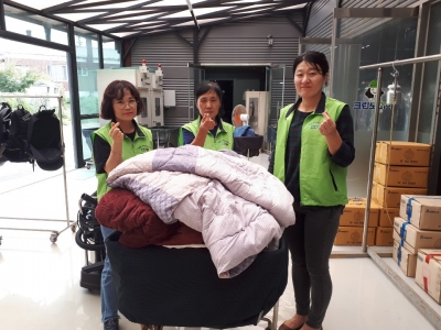 깨끗한 이불을 받으신 어르신은 “몸이 불편하고 힘이 없어 이불세탁을 할 엄두도 못 내고 있었는데, 깨끗하게 세탁을 해 갖다 주니 정말 감사하다”며 고마움을 표했다.