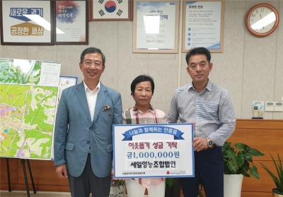 조성계 안중읍장은 “어려운 경제상황에서도 따뜻한 이웃사랑을 실천해주신 세일영농조합법인 양말단 대표님께 존경과 감사의 마음을 전한다”며, “기탁해 주신 귀중한 성금이 관내 복지사각지대에 있는 이웃들에게 잘 전달될 수 있도록 노력하겠다”고 전했다.