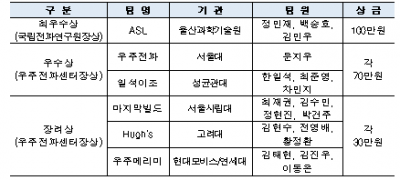 경진대회 결과, 최우수상에는 ASL팀, 우수상에는 우주전파팀과 일석이조팀, 장려상에는 마지막빌드팀과 Hugh’s팀과 우주메리미팀이 각각 선정됐다.