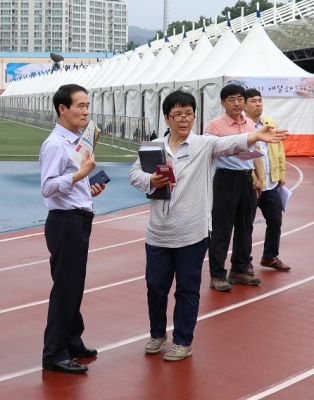 [충청뉴스큐] 박승환, 옥천군 부군수는 10일 옥천체육센터에서 10일부터 오는 11일에 개최되는‘제3회 옥천군민의 날 기념행사’사전 안전점검을 군청 안전총괄부서 및 유관기관 전문가와 함께 시설물 등을 점검했다.
