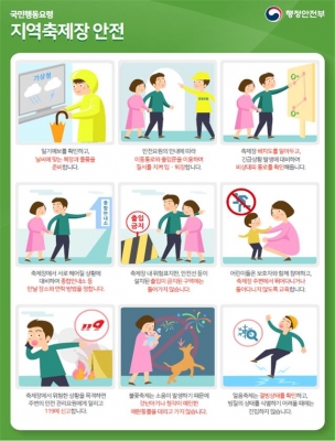 [충청뉴스큐] 행정안전부는 가을철 지역별로 다양한 축제가 개최됨에 따라 현장에서 발생할 수 있는 안전사고에 각별한 주의를 요청했다.