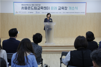 [충청뉴스큐] 서울특별시의회 김혜련 보건복지위원장은 지난 18일 ‘서울온드림교육센터’ 2호 문래센터 개소식에 참석하여, 중도입국청소년의 안정적인 국내정착을 돕고 있는 온드림교육센터의 추가 개소를 축하하고, 중도입국청소년들의 꿈과 미래를 응원하는 메시지를 전했다.