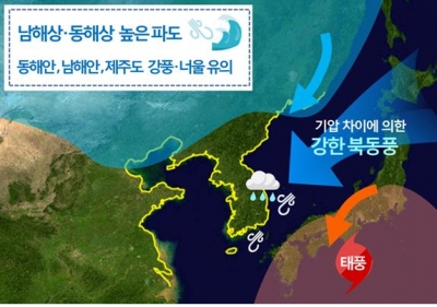 때문에 우리나라 주변은 기존에 영향을 주고 있던 차고 건조한 공기와 남쪽에서 북상하는 고온다습한 공기가 점차 가까워지면서 기압차가 커져 북동풍이 점차 강해지고 있으며, 태풍이 일본 도쿄 부근에 상륙하는 13일까지 바람은 더욱 강해질 것으로 예상된다.
