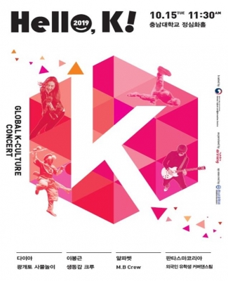 ‘헬로, 케이’는 주한 외국인 유학생들에게 한국의 전통과 현대, 정보기술이 접목된 융·복합 문화공연을 즐겁게 체험할 수 있는 기회를 제공하기 위한 사업으로서, 2015년부터 추진해 오고 있다. ‘케이’는 한국문화, 한국인 등을 의미한다. 이번 공연은 대전·충남 지역의 대학 10곳에 다니는 외국인 유학생 1,800여 명과 함께한다.