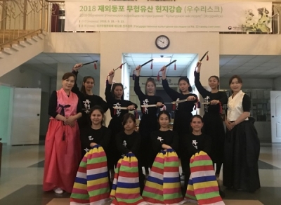 [충청뉴스큐] 문화재청 국립무형유산원은 지난 10일부터 오는 23일까지 연해주 고려인 민족문화자치회 소속 아리랑 가무단을 대상으로 ‘국가무형문화재 제12호 진주검무’에 대한 강습을 러시아 우수리스크 고려인문화센터에서 진행한다고 밝혔다.