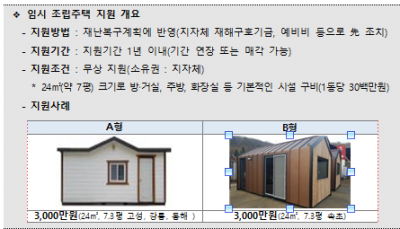 현재까지 수요 조사된 임시 조립주택은 총 86동으로 제작·설치를 위한 절차 등이 진행되고 있으며, 신속하게 지원될 수 있도록 지자체와 협력하여 적극 추진할 계획이다.