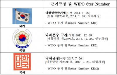 구체적으로 살펴보면, 정부상징을 상표로 사용할 경우 국기·국장 등 사용금지 규정 위반행위가 되고, 정부상징이 사용된 상품이 정부의 상품이나 정부가 후원한 상품으로 혼동하게 할 경우 상품주체·영업주체 혼동행위에 해당하며, 정부가 품질을 보증한 것처럼 사용할 경우 품질오인행위가 되므로 정부상징을 무분별하게 사용해선 안 된다.