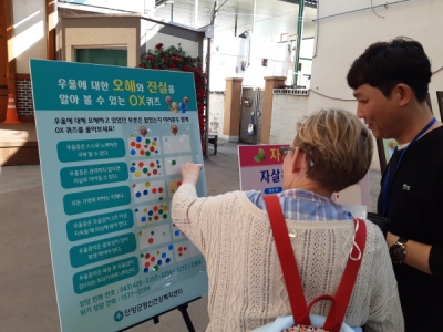 한편, 전체 50명이 응답한 ‘우울에 대한 오해와 진실’을 알아 볼 수 있는 OX퀴즈 결과 82.6%의 높은 정답률을 보여 지역주민의 우울증에 대한 인식이 양호한 상태인 것으로 나타났다.