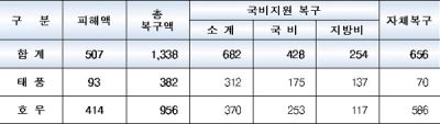 주택침수, 농경지 유실 등 사유시설 복구에 338억 원, 하천 및 도로정비 등 공공시설 복구비용이 1,000억 원 이다.
