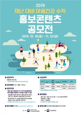 아울러 “이번 공모전을 통해 ‘재난 대비 마음건강 수칙’을 많은 분들이 알고 실천하기를 바라며, 공모전에 많은 관심과 참여를 부탁드린다”고 덧붙였다.
