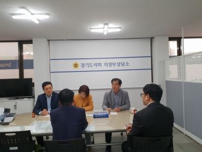[충청뉴스큐] 경기도의회 의정부상담소에서 보건복지위원회 이영봉 의원, 박태희 의원, 왕성옥 의원은 지난 19일 경기도사회복지공제회 김홍규 대표 외 1명과 함께 경기도사회복지공제회 현황 보고 및 애로사항을 청취하는 시간을 가졌다.