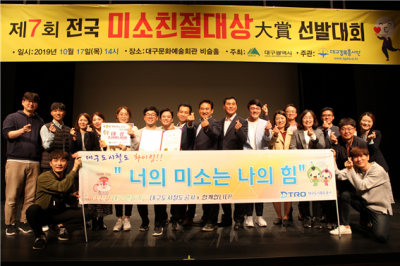 [충청뉴스큐] 대구도시철도공사는 지난 17일 오후 2시 대구문화예술회관에서 대구시 주최로 열린‘제7회 전국미소친절대상 선발대회’에서‘대상’을 수상했다.