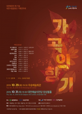 이번 공연은 뜨거웠던 열기를 뒤로하고 어느덧 깊어가는 가을 대전시립합창단이 가을밤을 수놓을 아름다운 한국 가곡으로 무대를 마련한다.