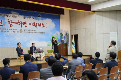 올해로 4번째인 ‘찾아가는 구·군 분권토크’는 대구시와 대구시 지방분권협력회의 주최로 열리고 있다. 김승수 기획단장은 지난해 9월 달서구 분권토크에 참석한 바 있으며 이달 10일 열린 수성구 분권토크에는 김순은 자치분권위원장이 참석했다. 연말까지 중구와 동구, 달서구에서 열리게 된다.