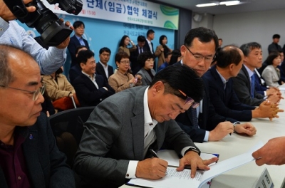 이날 체결식에는 장휘국 광주광역시교육감과 교육부 및 전국 시도교육청 대표와 교섭위원을 비롯해 전국학교비정규직연대회의 대표 및 교섭위원 등이 참석했다.