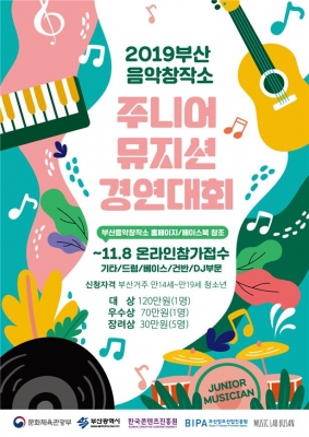 [충청뉴스큐] 부산시는 대중음악인을 꿈꾸는 부산지역 청소년을 대상으로 ‘2019 부산음악창작소 주니어 뮤지션 경연대회’를 개최한다고 밝혔다.