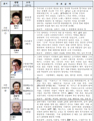 대중문화예술상은 대중문화예술의 사회적 위상과 대중문화예술인의 창작 의욕을 높이기 위한 정부포상으로서 올해 10주년을 맞이했다. 문체부는 수상 후보자들의 공적 기간, 활동 실적, 사회적 평판 및 인지도 등, 다양한 항목을 종합적으로 심사해 문화훈장 5명, 대통령표창 6명, 국무총리표창 8명, 문체부 장관 표창 9명 등 총 28명에게 대중문화예술상을 수여한다.