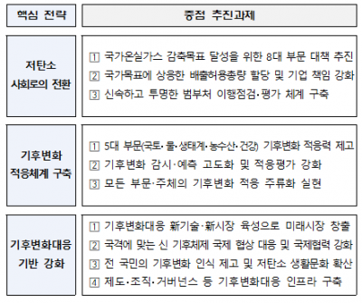 첨단기술에 기반을 둔 기후변화 감시·예측·평가 체계를 구축하고 기후변화 적응의 주류화를 추진한다.