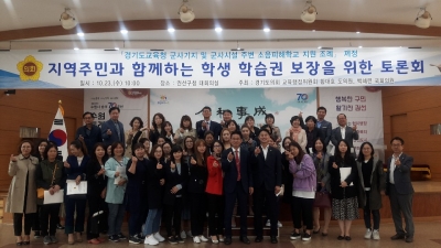 [충청뉴스큐] 경기도의회 교육행정위원회 황대호 의원이 대표발의해 지난 1일 공포된 ‘경기도교육청 군사기지 및 군사시설 주변 소음피해학교 지원 조례’ 시행에 따라 구체적인 지원방안 모색을 위한 ‘지역주민과 함께하는 학생 학습권 보장을 위한 토론회’가 23일 수원시 권선구청 대회의실에서 백혜련 국회의원, 황대호 의원 공동주최로 120여명이 참여한 가운데 성황리에 개최됐다.