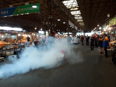 이날 훈련은 화재발생 위험 점포 밀집지역인 과일동 건물 내 가상 발화점을 설정해 통보, 피난, 소화, 구호 등 매뉴얼에 따라 자위소방대원들의 화재신고, 피난유도, 화재진화, 응급구조와 소방서의 화재진압으로 진행됐으며 복대119안전센터장의 훈련강평과 화재예방 교육으로 소방훈련을 마쳤다.