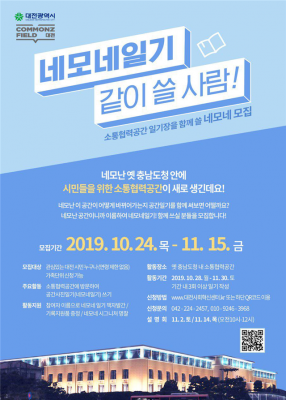 또한 시민기획단은 소통협력공간 사업 대상지뿐만 아니라 옛 충남도청 및 주변일대에 대한 느낌과 아이디어를 사진과 글 등을 통해 자유롭게 기록하는 역할을 담당하게 되며, ‘네모네’의 모든 기록물은 참여자들의 이름을 담아 공간에 대한 사진일기장 형식인‘네모네일기’책자로 다시 태어날 예정이다.