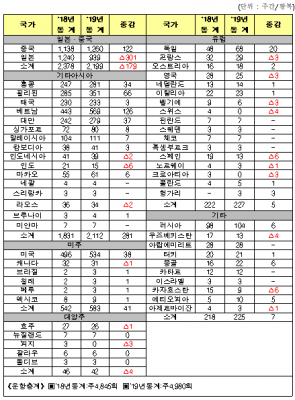 반면, 일본의 수출규제 조치 이후 방일 관광객 감소에 따라 일본노선은 2018년 동계대비 약 24% 대폭 감소해 2018년 동계기간 이후 유지하던 운항횟수 1위에서 1년 만에 밀려났다.