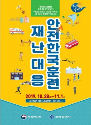 [충청뉴스큐] 부산시는 28일부터 오는 11월 1일까지 5일간, 각종 재난 발생 시 시민의 생명과 재산을 보호하고, 재난대응 역량을 강화하기 위해 중앙부처, 자치구·군, 유관기관·단체와 합동으로 ‘2019 재난대응 안전한국훈련’을 실시한다고 밝혔다.