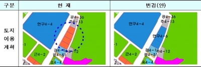 이를 위해, 기존 획지형을 블록형으로 변경하고, 남향위주의 주거 배치를 위해 토지의 형상 등을 조정했다.