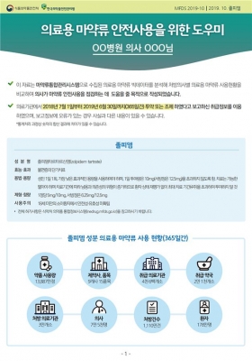 도우미 서한은 의료용 마약류 전체와 대상 약물 3종에 대한 종합통계와 함께 의사별 처방현황 통계 및 항목별 비교 통계로 구성된다.