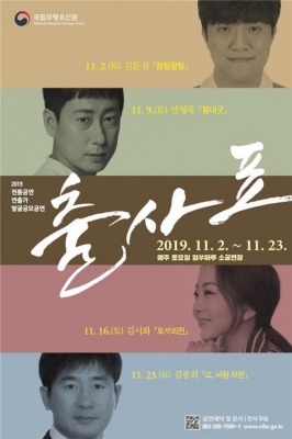 [충청뉴스큐] 문화재청 국립무형유산원은 오는 11월 2일부터 23일까지 매주 토요일 오후 4시 국립무형유산원 얼쑤마루 공연장에서 전통공연 연출가 발굴 공모를 통해 선정된 ‘2019 출사표’ 공연을 개최한다.