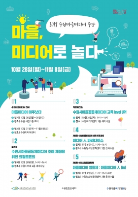 ‘마을, 미디어로 놀다’를 주제로 열리는 올해 마을미디어 주간에는 수원의 마을미디어 활동을 공유·감상할 수 있는 영화제, 워크숍, 전시회 등이 진행된다.