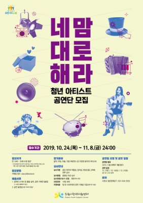 [충청뉴스큐] 수원시가 ‘수원청년주간’ 증 열리는 공연 ‘네 맘대로 해라’에서 공연할 청년 아티스트 공연단을 오는 11월 8일까지 모집한다.