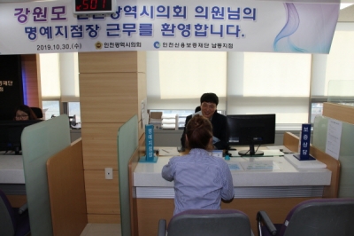[충청뉴스큐]인천신용보증재단이 30일 인천시의회 강원모 의원을 재단 남동지점 일일 명예 지점장으로 위촉하고, 지역 소상공인 보증상담과 간담회를 진행했다고 밝혔다.