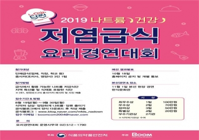 [충청뉴스큐] 식품의약품안전처는 덜달고 덜짠 음식의 대중화를 위해 1일 한식문화관에서 ‘2019년 저염급식·건강한 빵 요리경연대회‘를 개최한다.