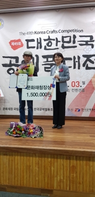 [충청뉴스큐] 국악과 예술의 고장 충북 영동군의 윤정희 씨가 제 49회 대한민국공예품대전에서 문화재청장상을 수상한 사실이 알려지면서 지역사회의 관심을 모으고 있다.