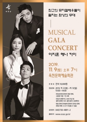 [충청뉴스큐] 옥천문화예술회관에서 오는 9일 오후7시에 데뷔 23년차 가수 겸 뮤지컬배우 이지훈, 인기절정의 뮤지컬 배우 카이, MBC TV복면가왕에 오른 폭풍가창력의 소유자 가수 해나, 그리고 JK재즈밴드와 함께하는 11월 기획공연 ‘뮤지컬 갈라 콘서트 ‘이지훈, 카이, 해나’’ 공연이 펼쳐진다.