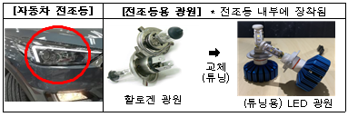 전조등용 LED 광원은 기존의 전조등에 사용되는 할로겐 광원을 대체해 사용 수 있는 것으로 그동안 시장의 수요가 많았으나 안전성을 확보할 수 있는 인증기준이 없어 부품 제조사에서 합법적인 개발이 어려운 상황이었다.