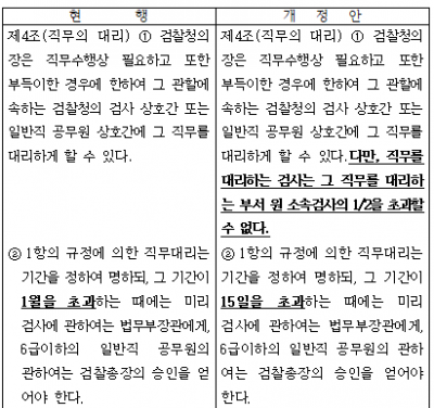 현행 ‘검찰근무규칙’에 의하면, 각 검찰청의 장은 파견기간이 1개월 이내인 경우에는 법무부장관의 승인없이 파견 명령을 자유롭게 할 수 있어, 그 기간을 축소해 내부파견을 더욱 제한할 필요가 있다고 밝혔다.