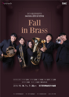 [충청뉴스큐]오는 14일 저녁 7시 30분, 대구문화예술회관 비슬홀에서 대구문화 예술회관 브라스퀸텟의 정기연주회 ‘폴 인 브라스’가 열린다.