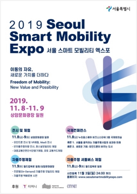 서울시가 11월 8일과 9일 상암 누리꿈스퀘어 및 MBC 앞 문화광장 등에서 ‘2019 서울 스마트모빌리티 엑스포’를 개최한다. 이번 행사는 4차 산업혁명이 가져다 줄 교통시스템의 변화를 전망하고 모빌리티의 미래 청사진을 제시하는 자리로 올해 처음 열린다. 미래 교통에 대한 서울의 비전을 소개하고 시민들이 눈으로 보고 직접 경험할 수 있는 체험의 장이 펼쳐진다.