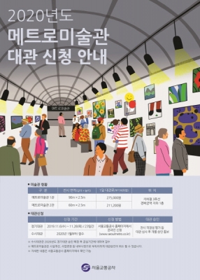 [충청뉴스큐] 서울교통공사가 오는 6일부터 28일까지 23일간 접근성이 좋고 합리적인 가격으로 이용할 수 있는 메트로미술관의 2020년 정기대관 신청 접수를 실시한다.